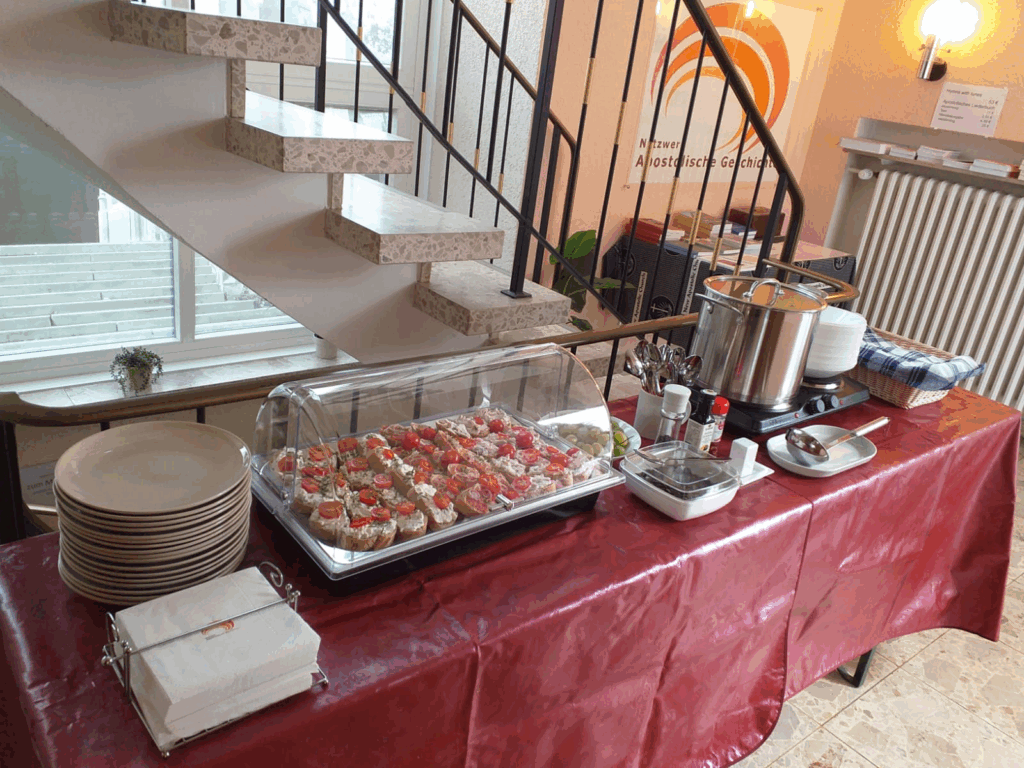Jeder dieser Teile bot neben den vorgestellten Inhalten ausführliche Gelegenheit zu Nachfragen und wurde mit einem passenden gemeinsamen Lied aus dem Apostolischen Liederbuch des Netzwerks und einer Pause abgeschlossen. Ein leichtes selbstgemachtes Mittagessen und eine Kaffee- und Kuchenpause rundeten das Programm ab, das pünktlich um 17 Uhr endete.