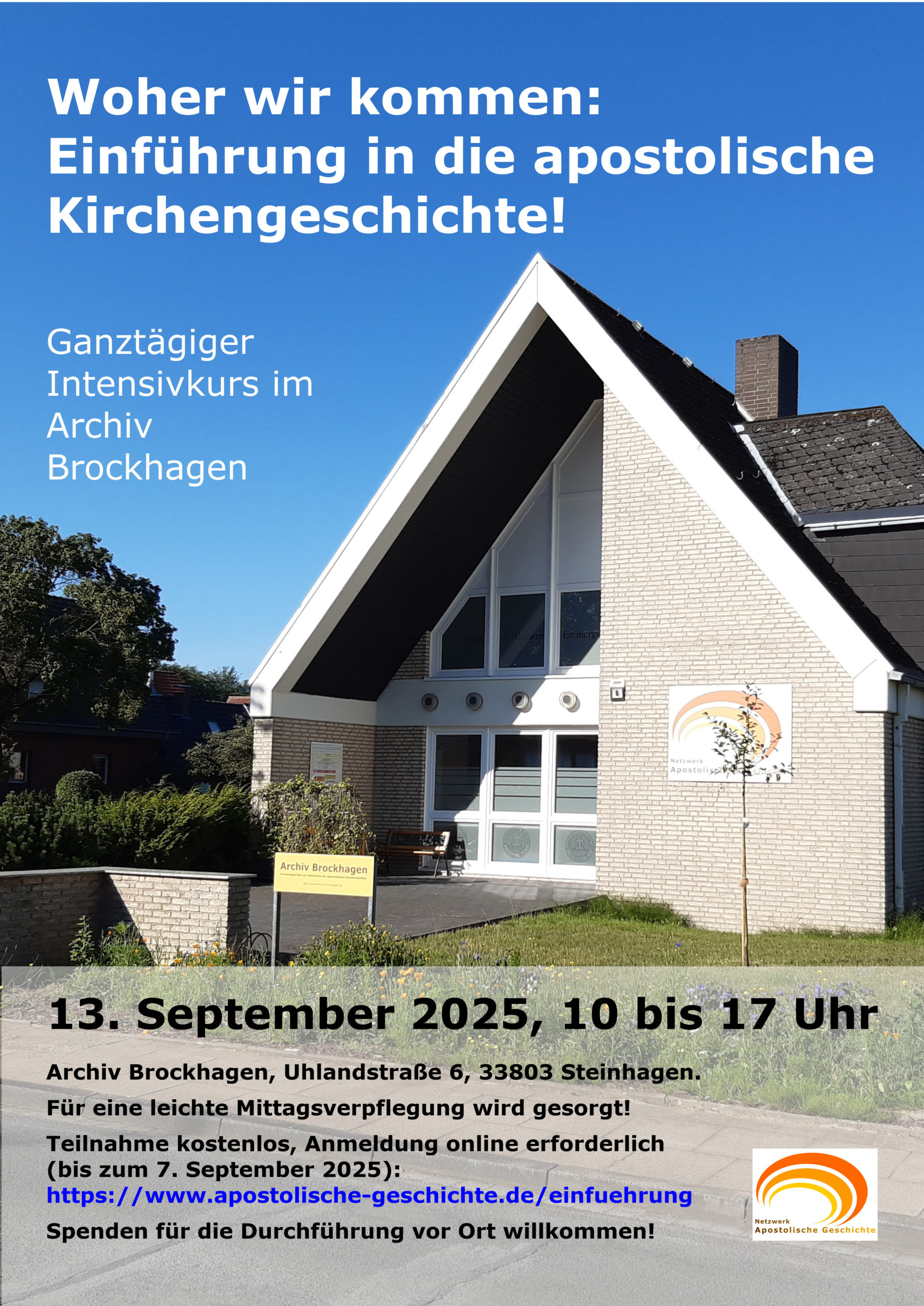 Die Veranstaltung im Archiv Brockhagen möchte an einem Samstag von 10 bis 17 Uhr einen umfassenden Einstieg in die apostolische Kirchengeschichte bieten. Referent ist Mathias Eberle.