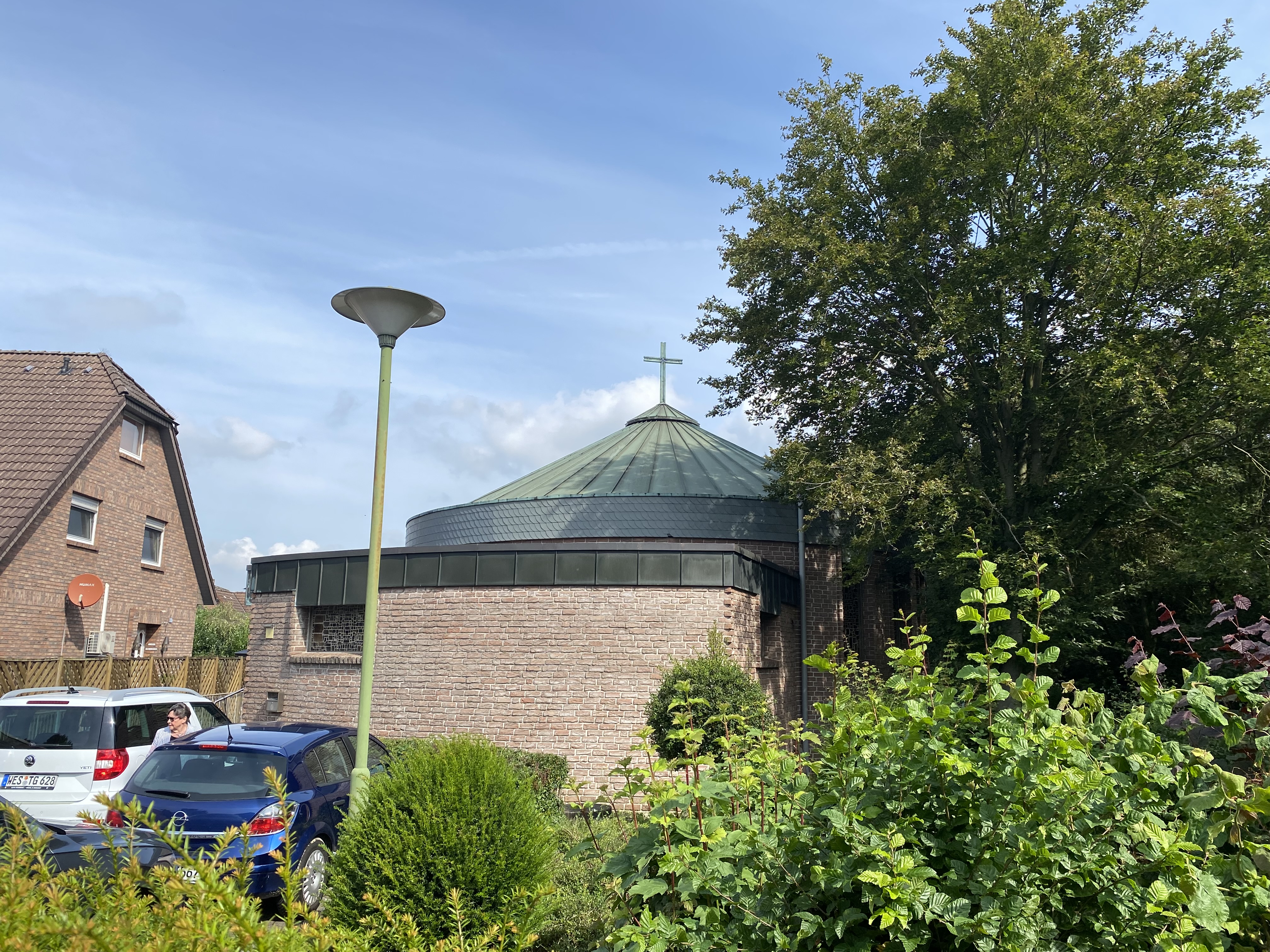 Das Kirchengebäude liegt in einem Wohngebiet auf einem Eckgrundstück der Straße Hövelmannskath 1. Es ist mit der Kirche in Dinslaken eins von zwei eigenen Kirchengebäuden der Apostolischen Gemeinschaft im ehemaligen Bezirk Wesel.